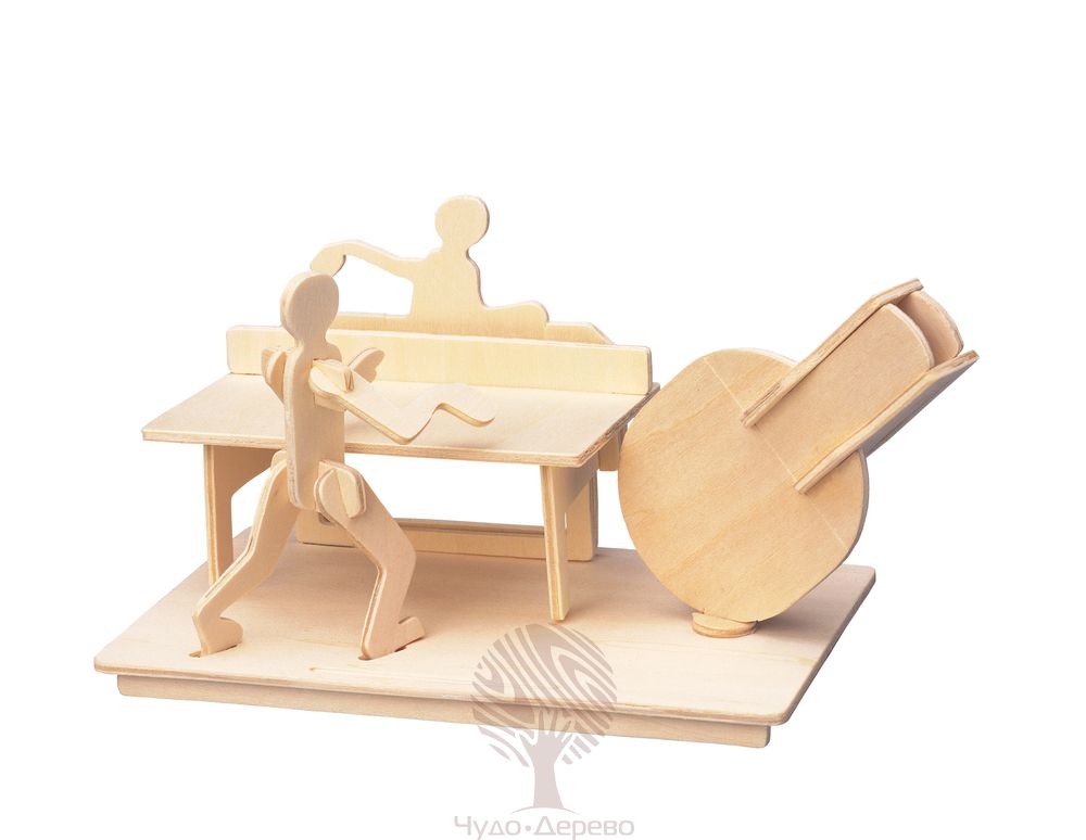Сборная деревянная модель Подставка для ручек "Настольный теннис", артикул: S024. Комплект включает в себя набор деталей, вырезанных на фанерных листах; схему сборки; наждачную бумагу. Детали скрепляются в порядке и очередности, обозначенной в инструкции. Для прочности соединений рекомендуется использовать клей ПВА (не токсичен, не имеет запаха, после высыхания становится прозрачным, имеет эластичный клеевой шов, при загустевании может быть разбавлен водой). Возрастная ориентация: от 5 до 105 лет.