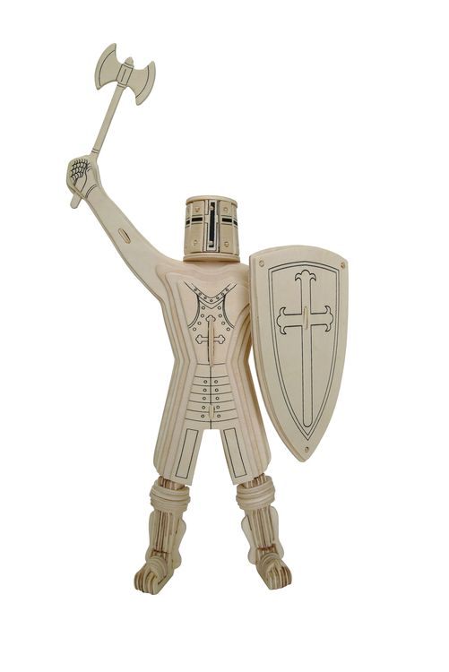 Сборная деревянная модель Тевтонский рыцарь, артикул: P223. Комплект включает в себя набор деталей, вырезанных на фанерных листах; схему сборки; наждачную бумагу. Детали скрепляются в порядке и очередности, обозначенной в инструкции. Для прочности соединений рекомендуется использовать клей ПВА (не токсичен, не имеет запаха, после высыхания становится прозрачным, имеет эластичный клеевой шов, при загустевании может быть разбавлен водой). Возрастная ориентация: от 5 до 105 лет.